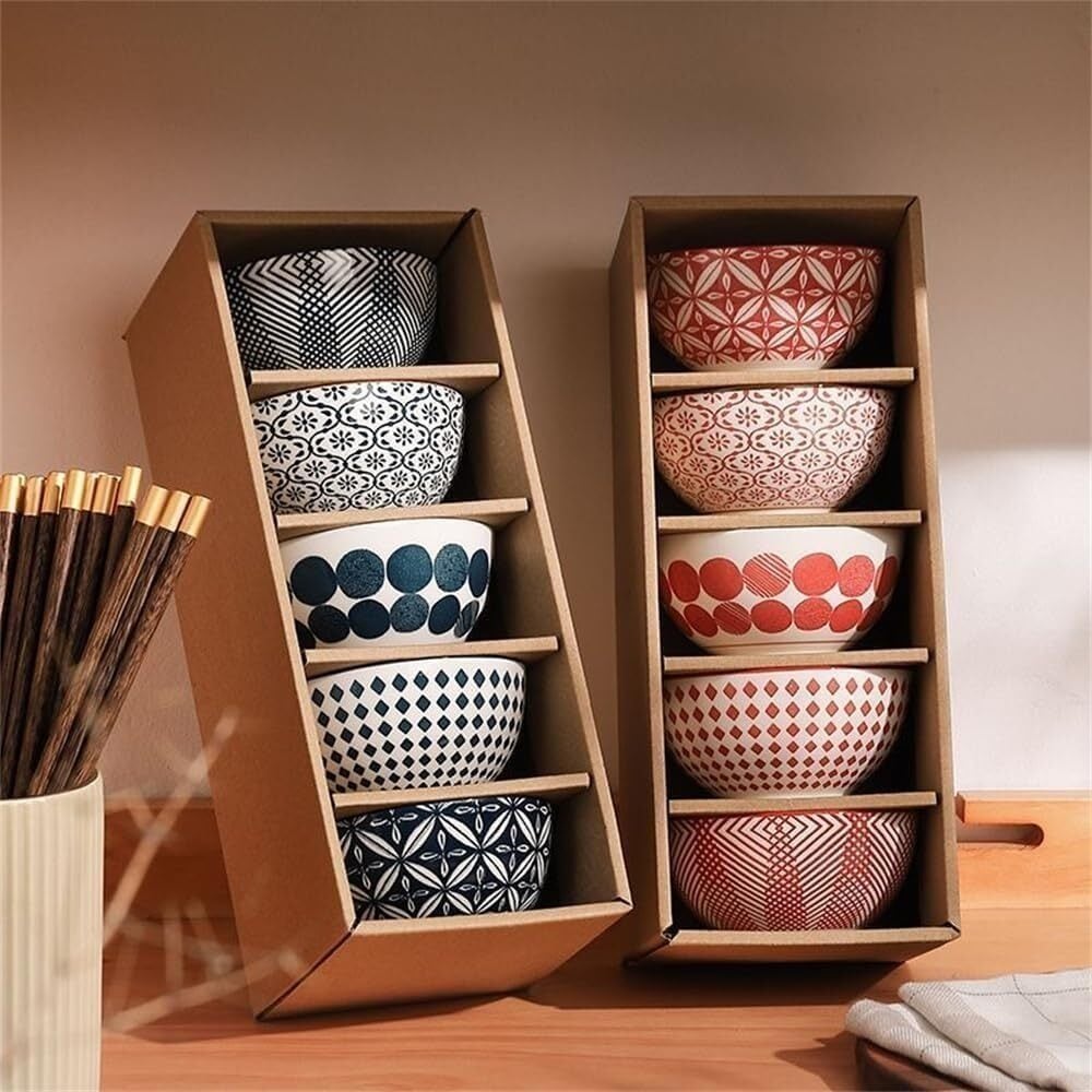 和風陶器製 大皿と茶碗セット【贈り物用・米飯用・ギフトボックス付き】